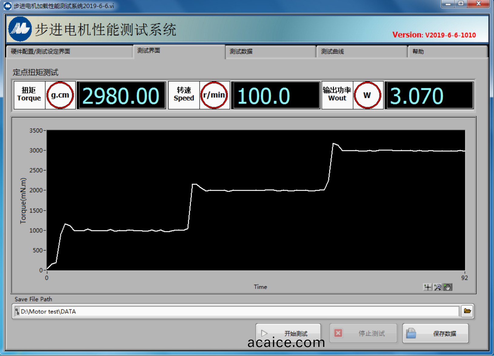 C0-MTHD- S100KT步进电机(ji)测(ce)试(shi)系统(tong)用于测(ce)试(shi)步(bu)进电机(ji)在(zai)不(bu)同频率下(xia)的(de)失(shi)步(bu)力(li)矩,本系统(tong)实现(xian)了(le)对步进电机(ji)多(duo)种(zhong)模(mo)式的(de)控(kong)制(zhi),能够实时(shi)采(cai)集、存(cun)储电(dian)机(ji)的电压(ya)和(he)电(dian)流(liu)、扭(niu)矩、转(zhuan)速(su)、功率等(deng)信(xin)号(hao),并(bing)对(dui)数(shu)据分(fen)析处(chu)理以(yi)判断(duan)电(dian)机运(yun)转状态(tai)。